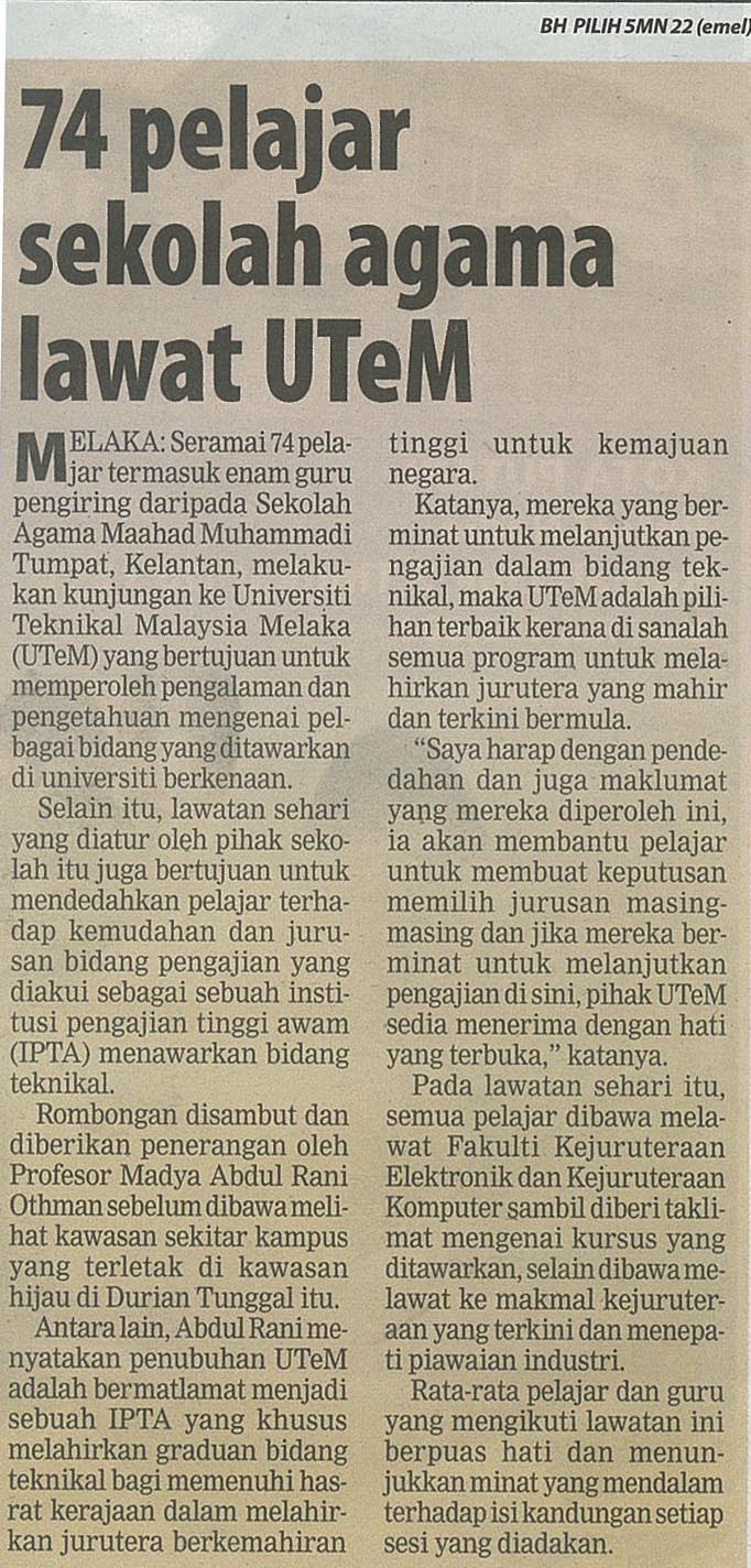 74 pelajar sekolah agama lawat UTeM