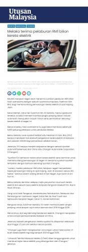 Melaka terima pelaburan RM1 bilion kereta elektrik