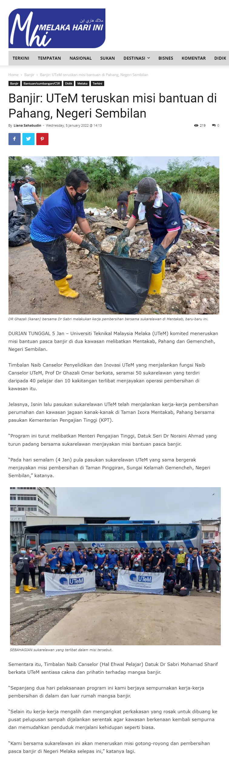Banjir: UTeM teruskan misi bantuan di Pahang, Negeri Sembilan