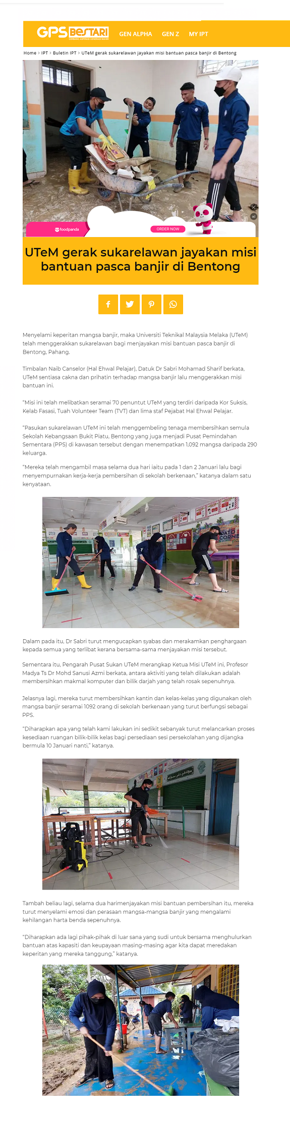 UTeM gerak sukarelawan jayakan misi bantuan pasca banjir di Bentong