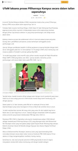 UTeM laksana proses Pilihanraya Kampus secara dalam talian sepenuhnya