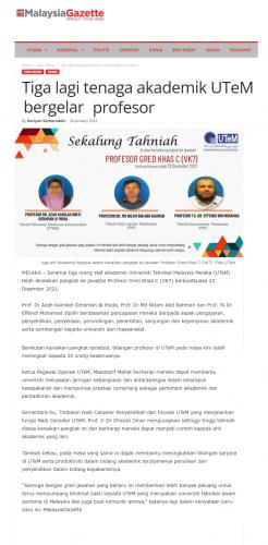 Tiga lagi tenaga akademik UTeM bergelar profesor