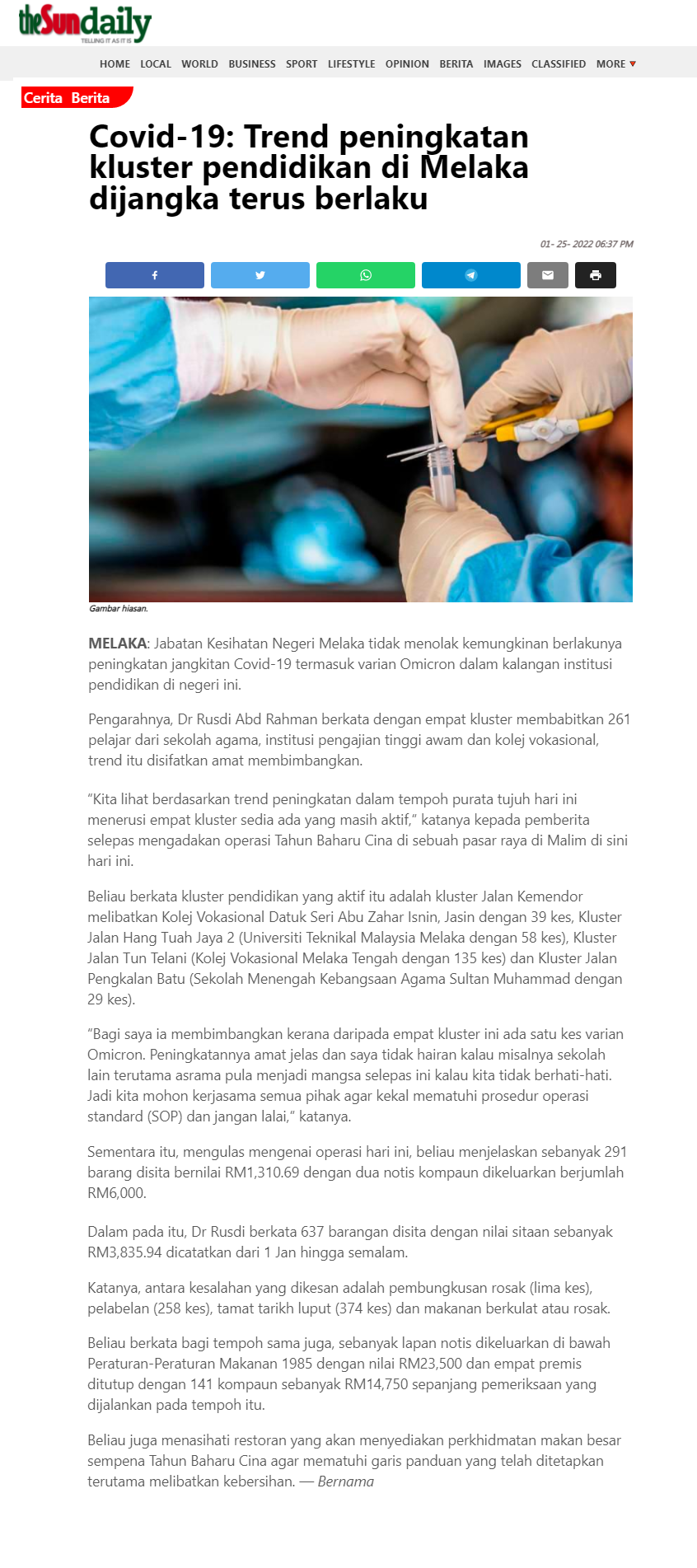 Covid-19: Trend peningkatan kluster pendidikan di Melaka dijangka terus berlaku