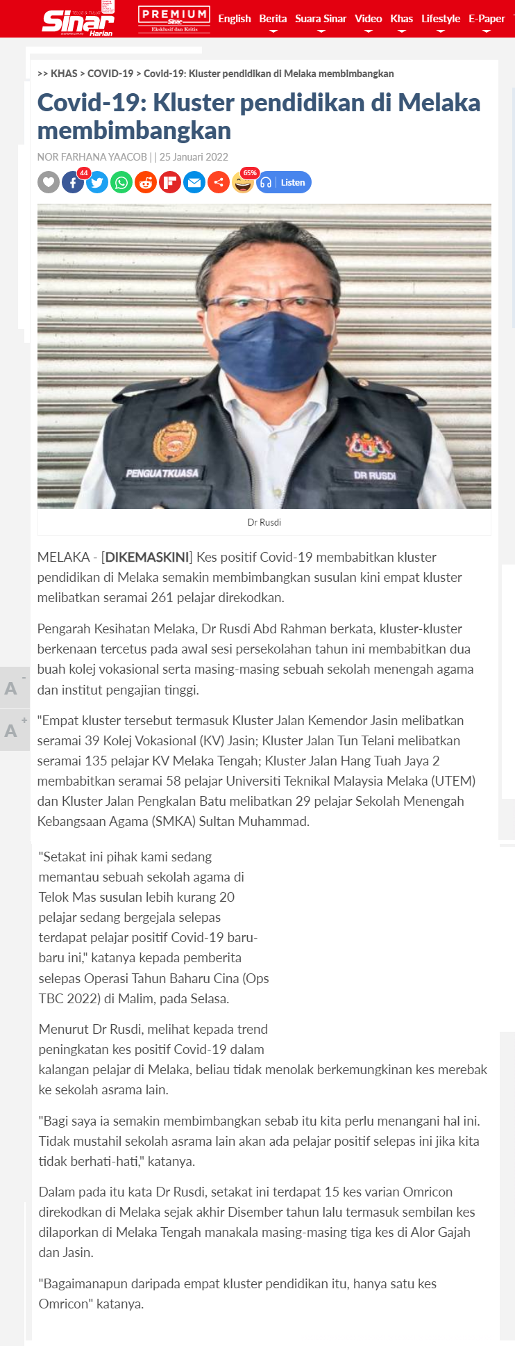 Covid-19: Kluster pendidikan di Melaka membimbangkan