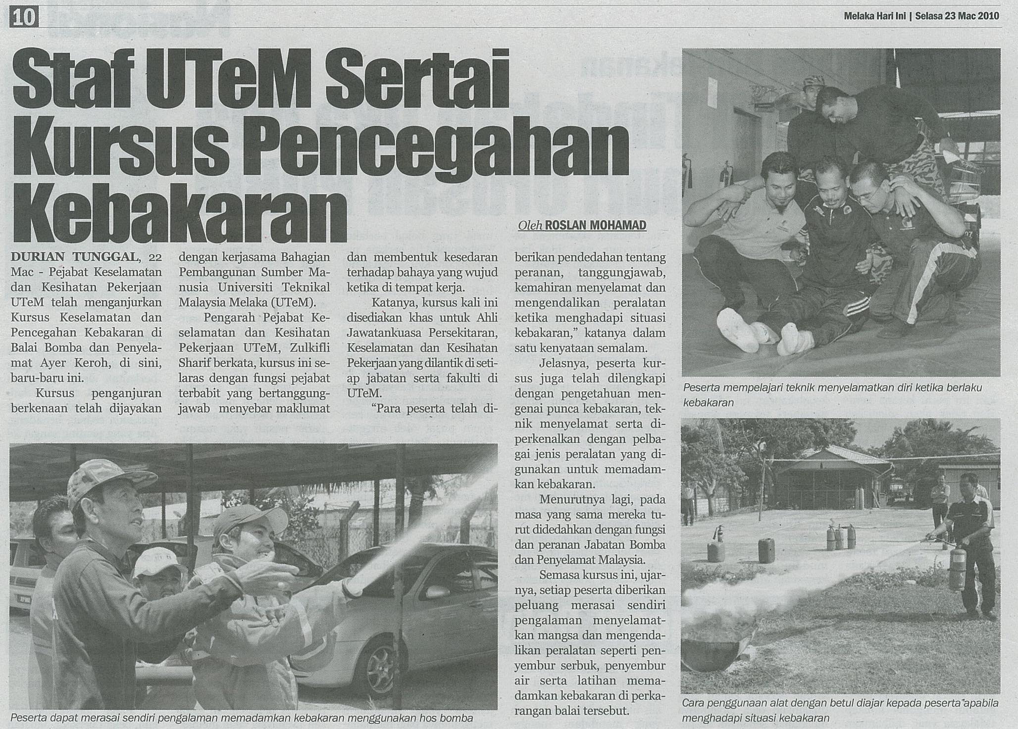 Staf UTeM sertai Kursus Pencegahan Kebakaran