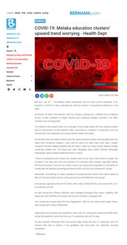 Covid-19: Malacca education clusters’ upward trend worrying - Health Dept
