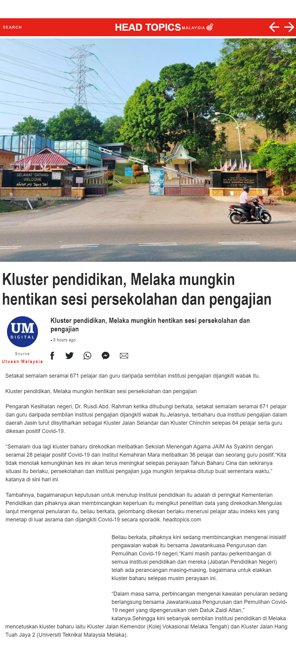 Kluster pendidikan, Melaka mungkin hentikan sesi persekolahan dan pengajian