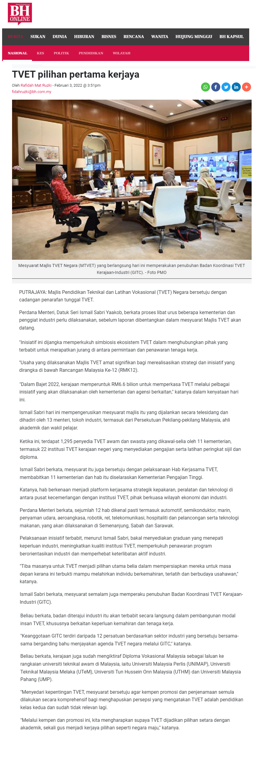 TVET pilihan pertama kerjaya