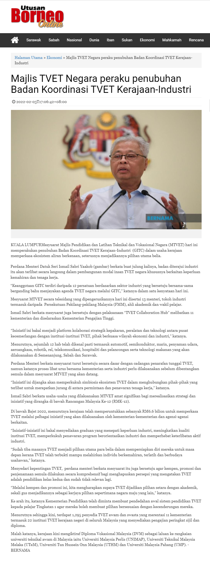 Majlis TVET Negara peraku penubuhan Badan Koordinasi TVET Kerajaan-Industri