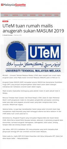 UTeM tuan rumah majlis anugerah sukan MASUM 2019