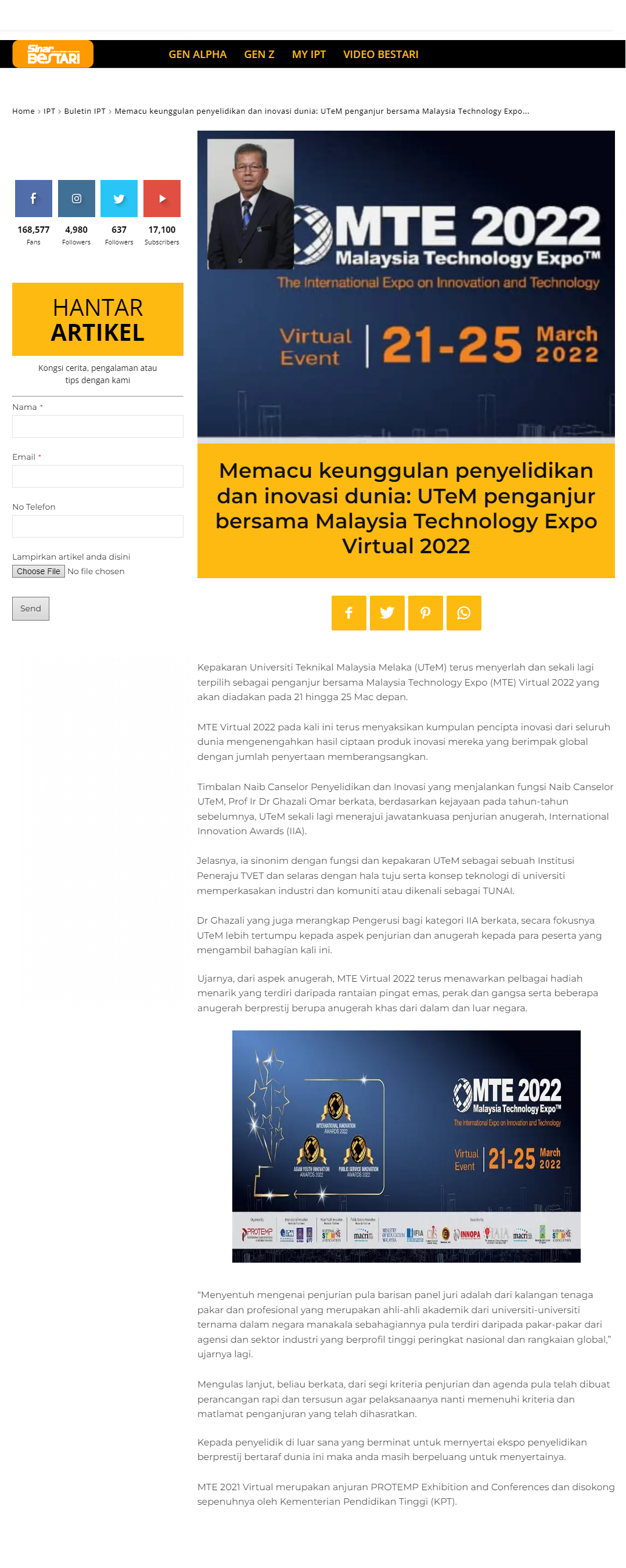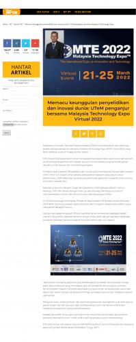 Memacu keunggulan penyelidikan dan inovasi dunia: UTeM penganjur bersama Malaysia Technology Expo Virtual 2022