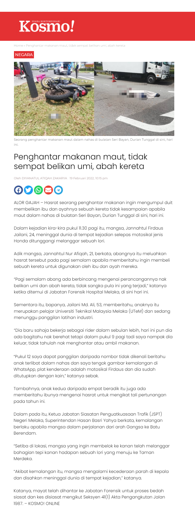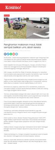 Penghantar makanan maut, tidak sempat belikan umi, abah kereta