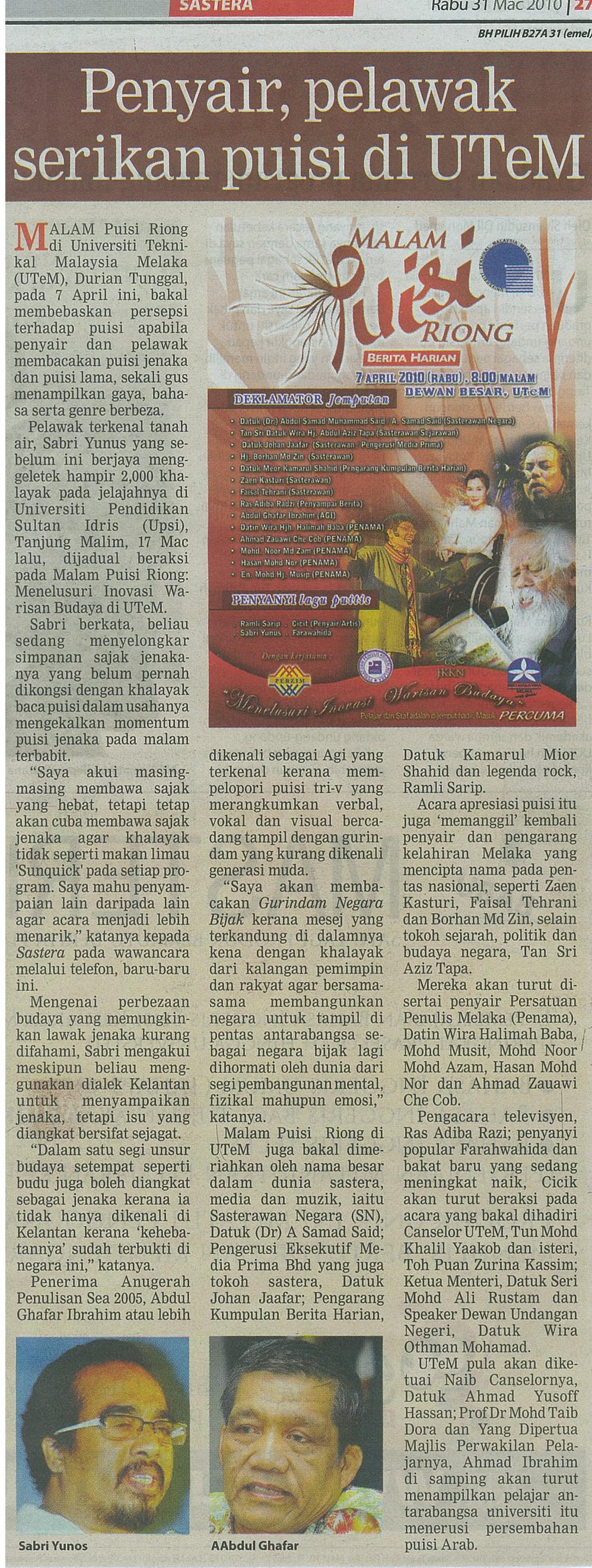 Penyair, pelawak serikan puisi di UTeM