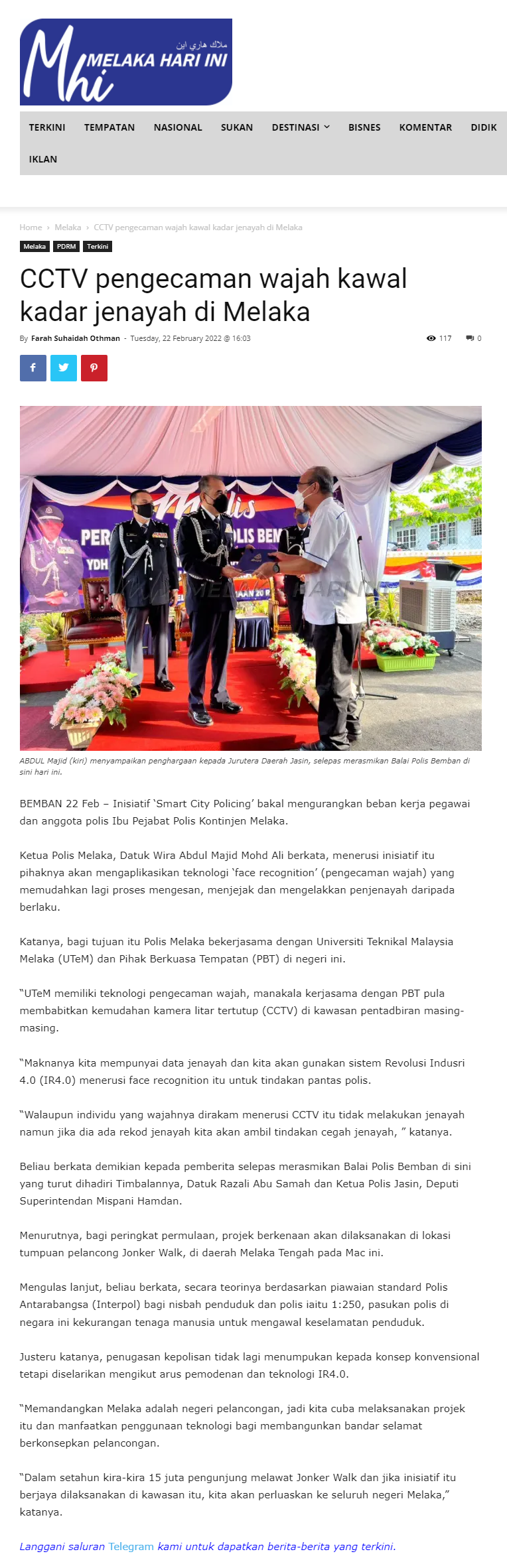 CCTV pengecaman wajah kawal kadar jenayah di Melaka