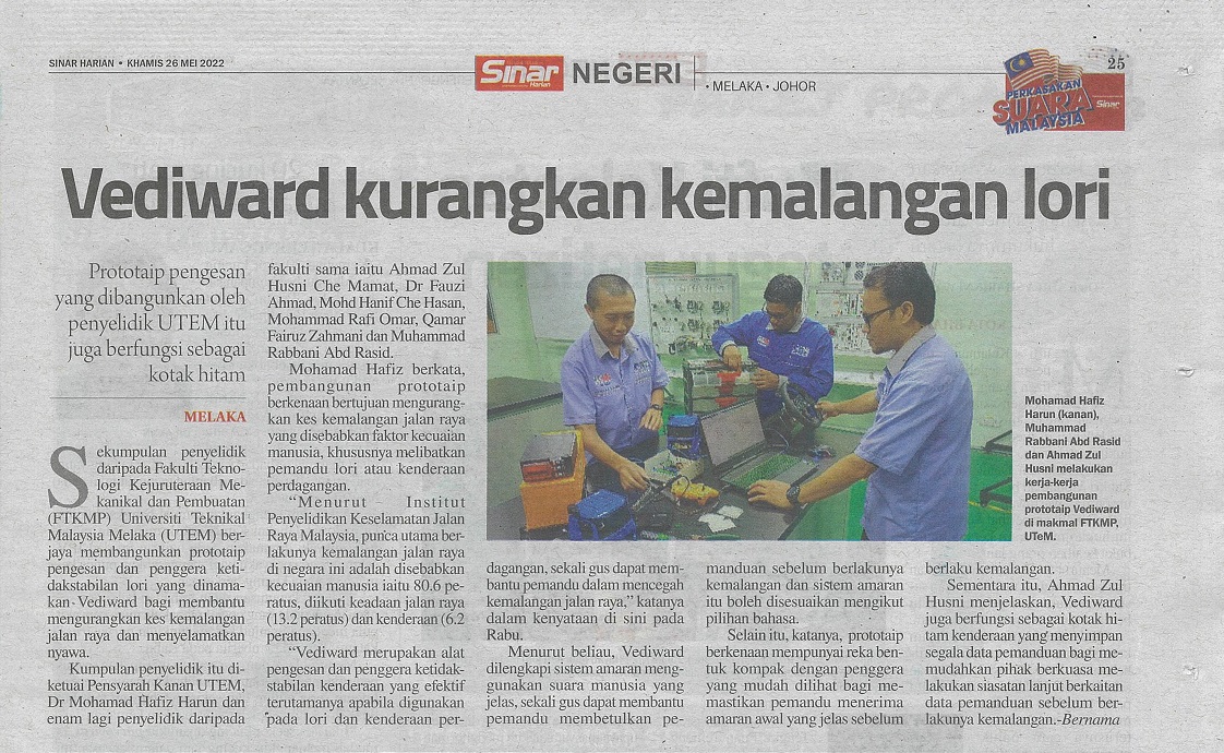 Vediward kurangkan kemalangan lori