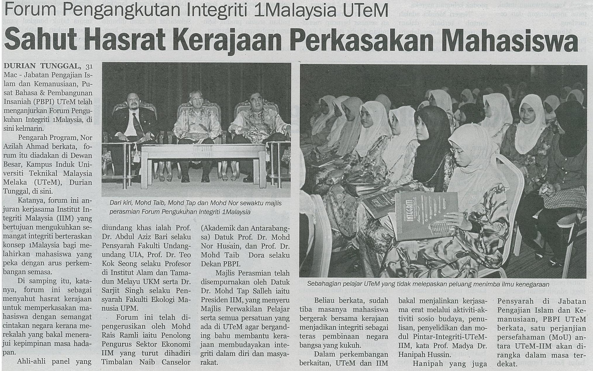 Forum Pengukuhan Integriti 1Malaysia UTeM