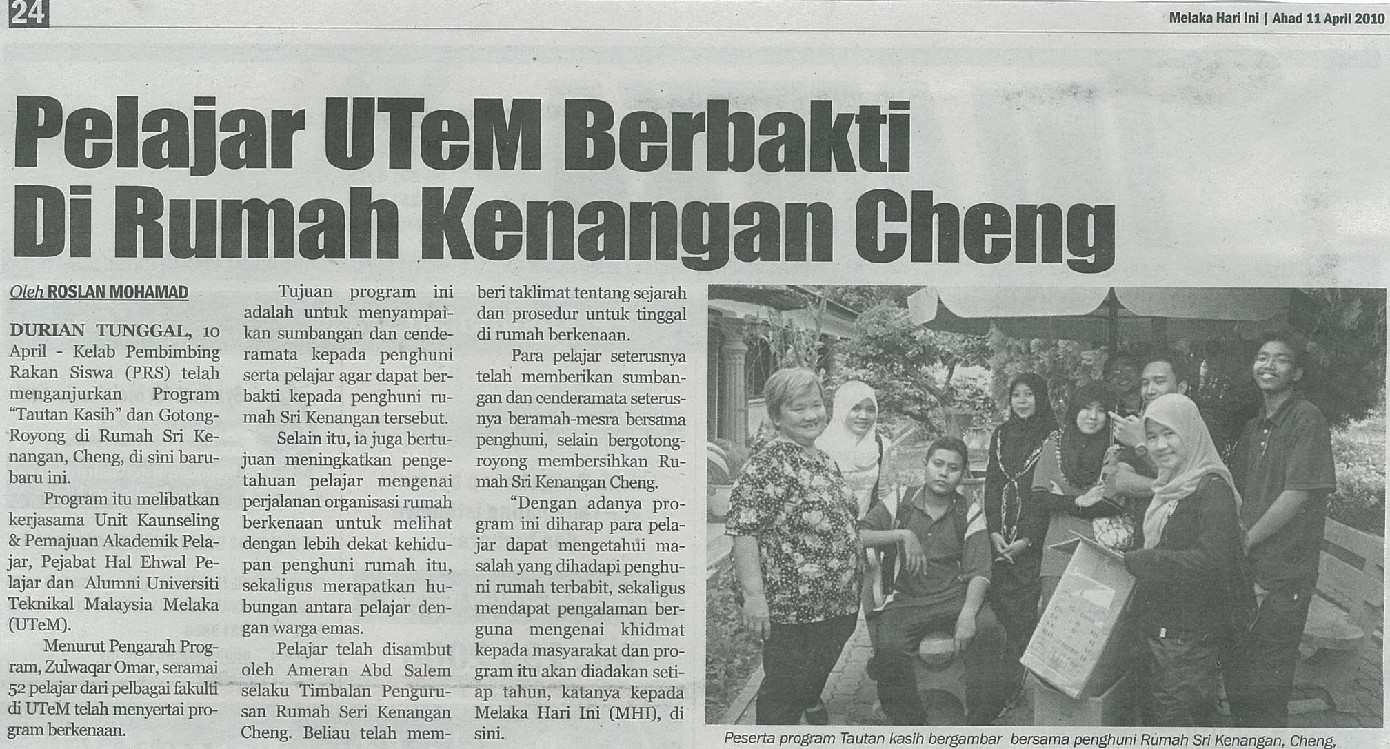 Pelajar UTeM berbakti di Rumah Kenangan Cheng