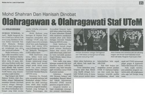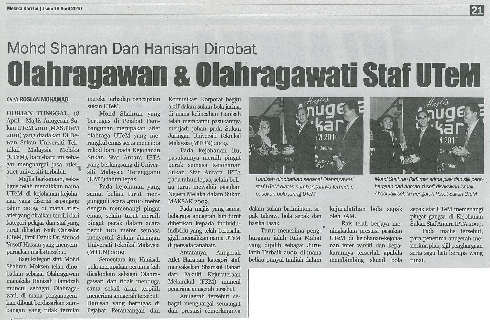 Mohd Shahran & Hanisah dinobat Olahragawan Olahragawati staf UTeM