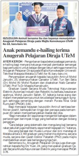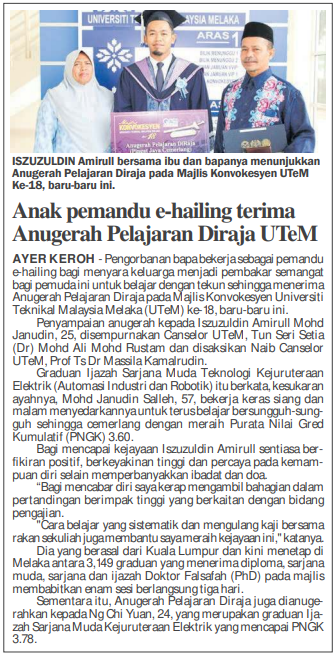 Anak pemandu e-hailing terima ANugerah Pelajaran Diraja UTeM