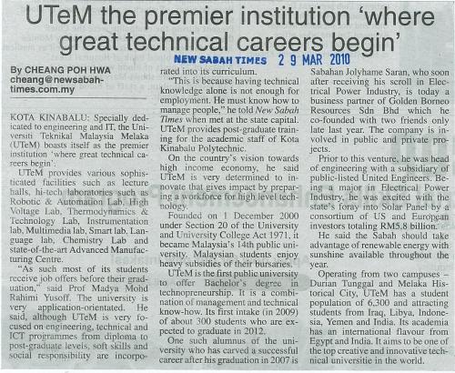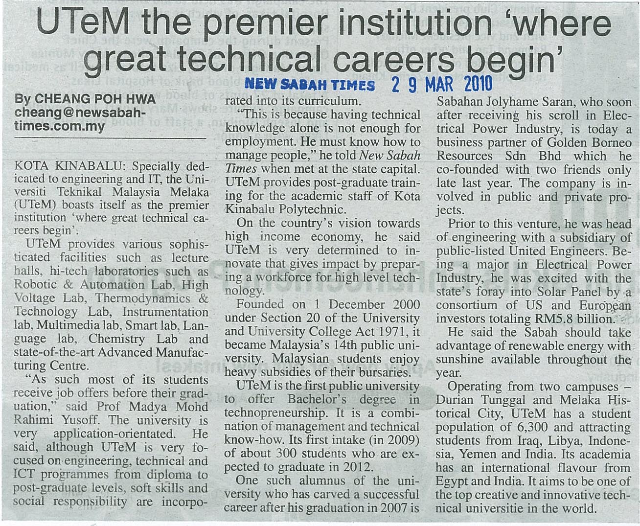 UTeM the premier institution 'where great technical careers begin' (New Sabah Times)