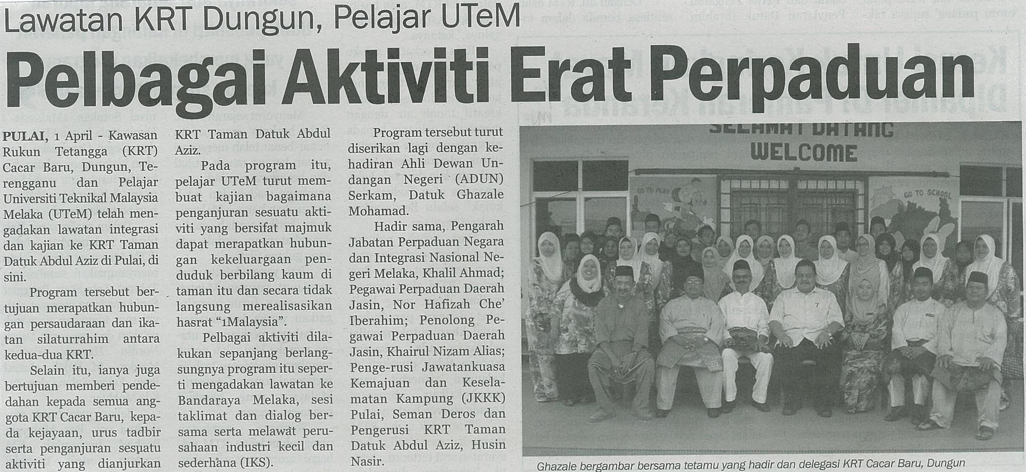 Lawatan KRT Dungun, Pelajar UTeM: Pelbagai aktiviti erat perpaduan