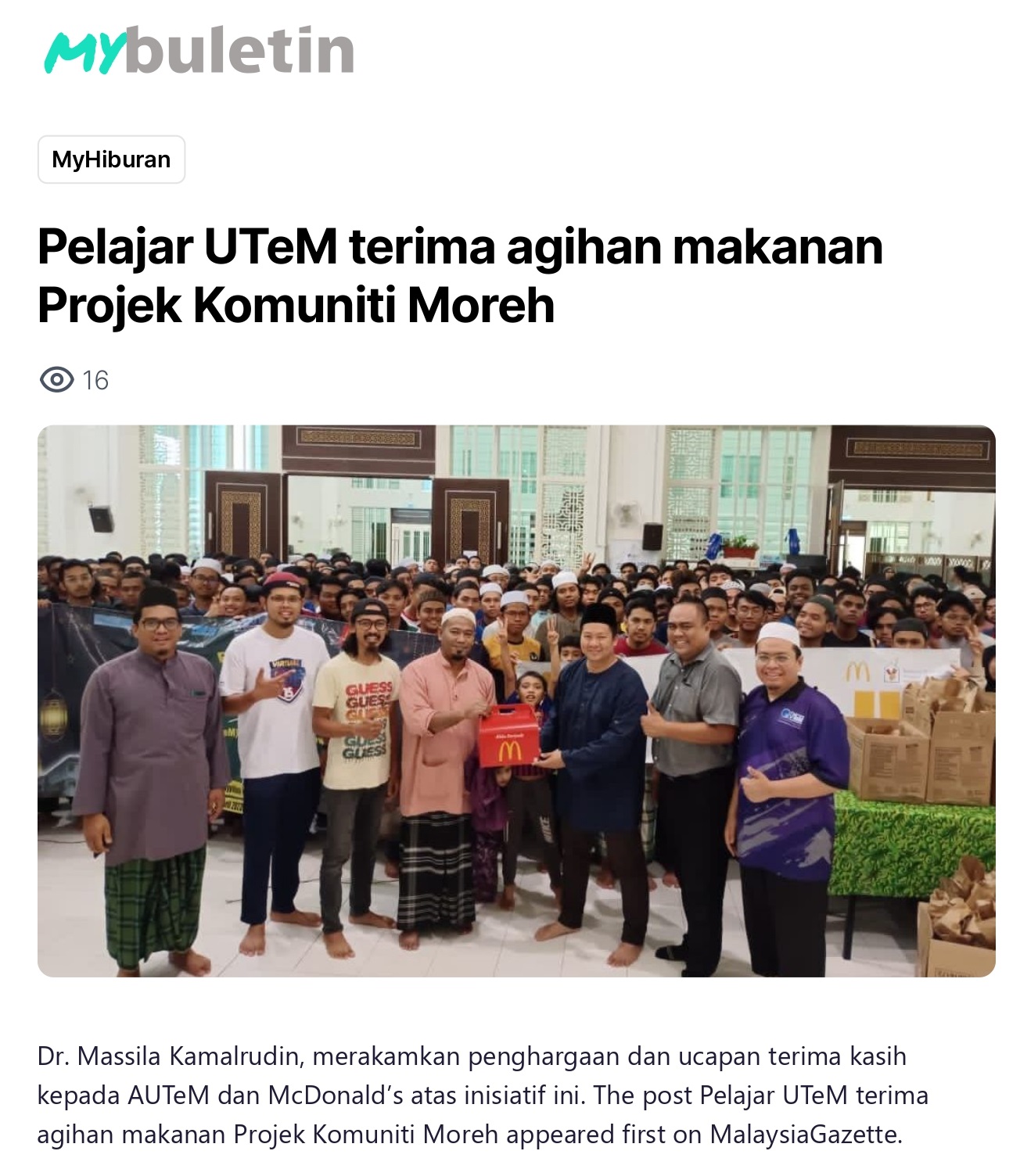 Pelajar UTeM terima agihan makanan Projek Komuniti Moreh