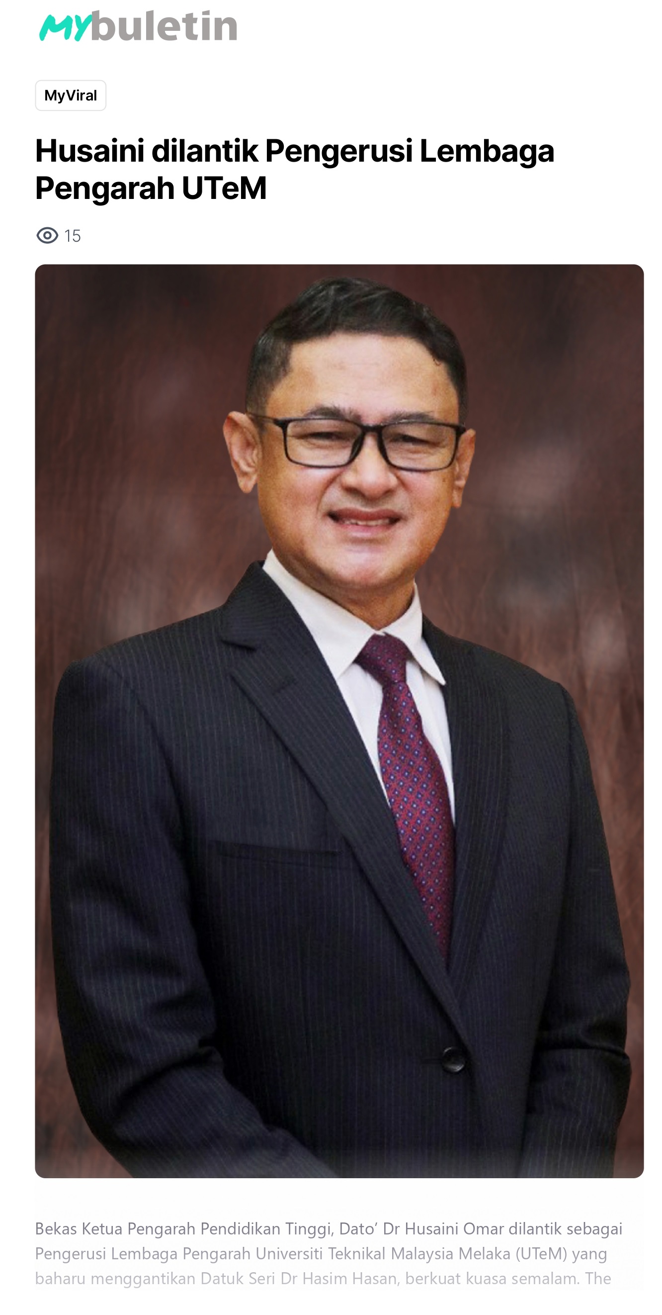 Husaini dilantik Pengerusi Lembaga Pengarah UTeM